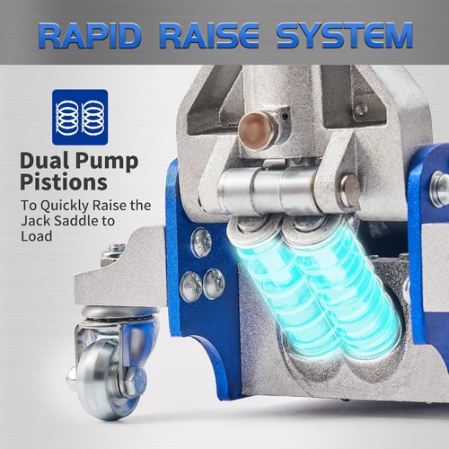 LIGHTNING-FAST LIFT: The dual pump pistons of our floor jack provide rapid raising so you can quickly and easily achieve the desired height for your vehicle