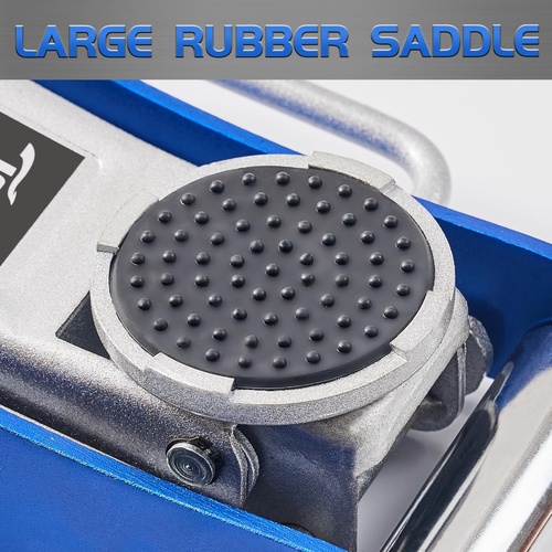 PROTECTIVE RUBBER SADDLE: Our floor jack features a durable, large rubber saddle that helps align with the side welding seam. This prevents bending or scratching of your frame rail and protects painted or coated chassis components
